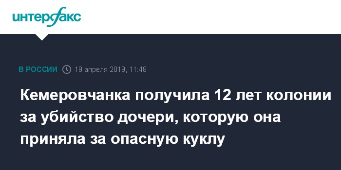 Кемеровчанка получила 12 лет колонии за убийство дочери, которую она приняла за опасную куклу