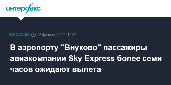 Представитель Sky Express Виталий Коренюгин сообщил, что то, что происходит во Внуково - это обычная задержка рейсов, однако от боле подробного комментария в компании отказались.