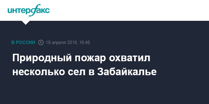 Москва. 19 апреля. INTERFAX.RU - Природный пожар почти полностью уничтожил село на юге Забайкальского края, огонь угрожает соседнему поселению, сообщили "Интерфаксу" в пятницу в местной администрации.