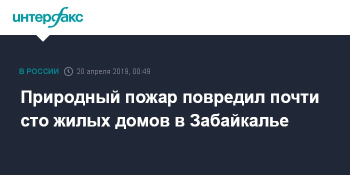 Москва. 19 апреля. INTERFAX.RU - Природный пожар повредил, по меньшей мере, 98 жилых домов в поселках Забайкалья, сообщили "Интерфаксу" в МЧС.