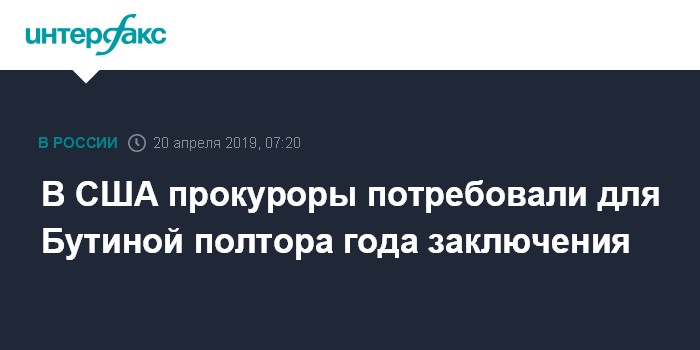 Москва. 20 апреля. INTERFAX.RU - Обвинители гражданки России Марии Бутиной, которая признала факт работы в качестве иностранного агента в США, потребовали для нее 18 месяцев лишения свободы, сообщило в субботу агентство Associated Press.
