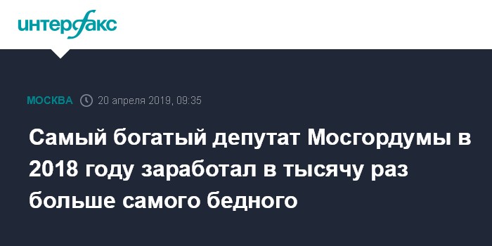 Самый богатый депутат Мосгордумы в 2018 году заработал в тысячу раз больше самого бедного
