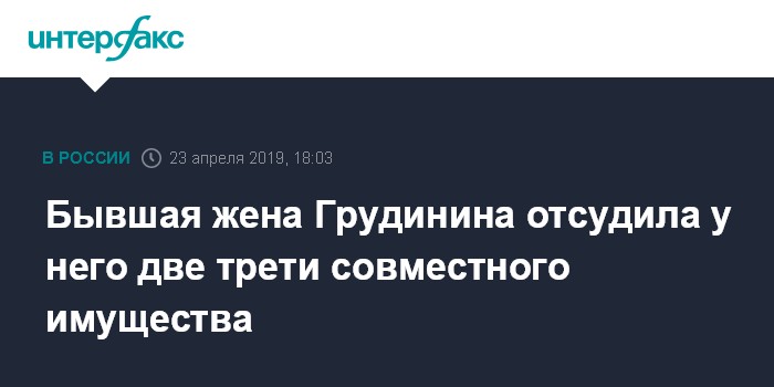 "Сегодня Видновский городской принял решение об удовлетворении исковых требований Ирины Игоревны Грудининой и присудил ей две трети доли в общем имуществе супругов", - сообщил "Интерфаксу" адвокат Дмитрий Мальбин, представляющий интересы Ирины Грудининой.