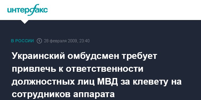 Украинский омбудсмен требует привлечь к ответственности должностных лиц МВД за клевету на сотрудников аппарата уполномоченного по правам человека