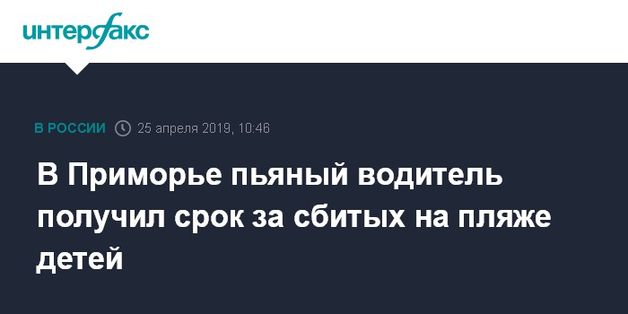 Москва. 25 апреля. INTERFAX.RU - Приморский краевой суд приговорил к одному году и 10 месяцам колонии-поселения водителя Lexus, который пьяным сбил троих детей на пляже летом 2018 года, сообщает в четверг пресс-служба прокуратуры Приморского края.
