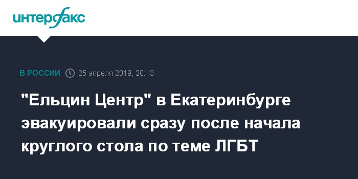 Москва. 25 апреля. INTERFAX.RU - Сообщение о бомбе поступило через несколько минут после того, как в "Ельцин Центре" начался круглый стол, посвященный теме ЛГБТ, сообщили агентству "Интерфакс" в четверг участники мероприятия.