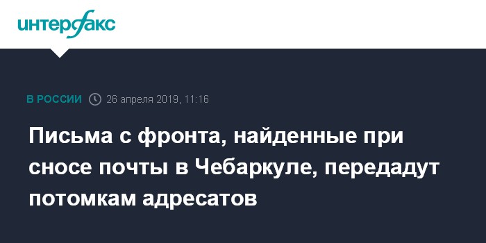 Москва. 26 апреля. INTERFAX.RU - Письма с фронтов Великой Отечественной войны, пролежавшие почти 80 лет в подвале здания бывшей почты, нашли в Чебаркуле (Челябинская область), сообщила "Интерфаксу" заместитель совета ветеранов города Светлана Колодкина.