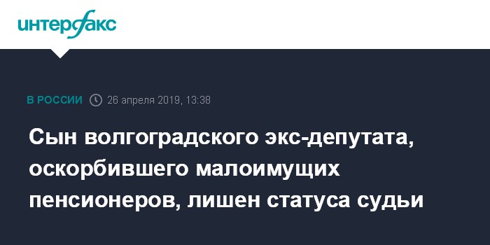 Сын волгоградского экс-депутата, оскорбившего малоимущих пенсионеров, лишен статуса судьи