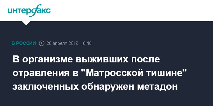 Москва. 26 апреля. INTERFAX.RU - Двое арестантов СИЗО-1 "Матросская тишина", выживших после тяжелого отравления наркотиками, принимали метадон, сообщил "Интерфаксу" информированный источник в пятницу.