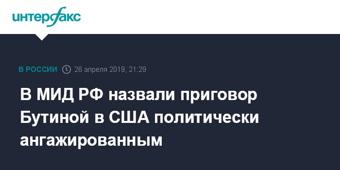 Москва. 26 апреля. INTERFAX.RU - Приговор Марии Бутиной в США - это политически ангажированное решение, обвинения в отношении россиянки носят сфабрикованный характер, заявили в МИД РФ.