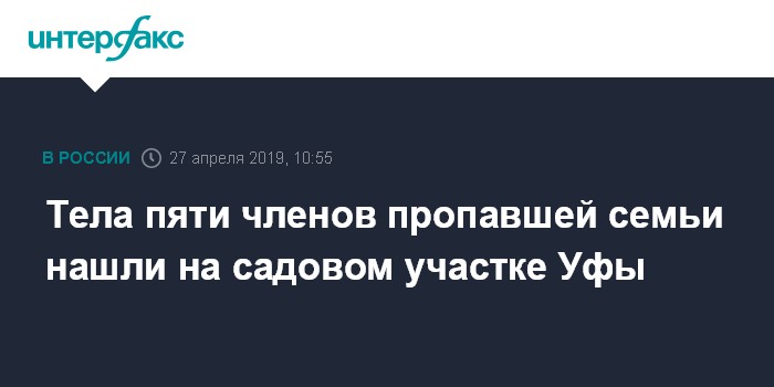 Ранее сообщалось, что в связи с исчезновением 22-летней девушки, ее девятимесячного ребенка, а также ее 39-летней матери и двух братьев двух и шести лет в Башкирии было возбуждено два уголовных дела по пп."а", "в" ч.2 ст.105 УК РФ (убийство двух и более лиц, совершенное в отношении малолетнего по факту исчезновения).