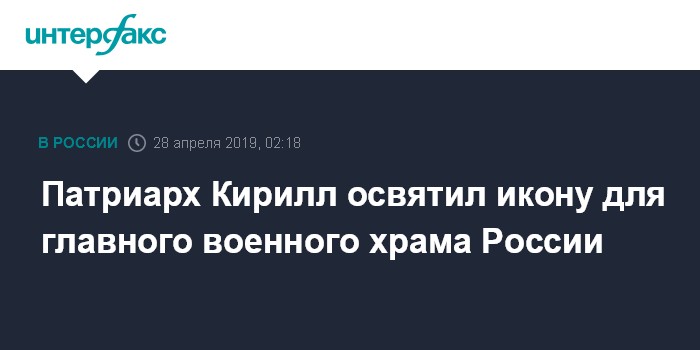 Москва. 28 апреля. INTERFAX.RU - Патриарх Московский и Всея Руси Кирилл освятил икону "Спас Нерукотворный", созданную на средства президента РФ Владимира Путина для главного храма Вооруженных сил РФ.