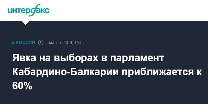 Нальчик. 1 марта. INTERFAX.RU - В Кабардино-Балкарии к 14:00 мск в голосовании на выборах депутатов республиканского парламента приняли участие 58,2% зарегистрированных избирателей, сообщила агентству "Интерфакс-Юг" секретарь республиканского избиркома Ирина Атмурзаева.