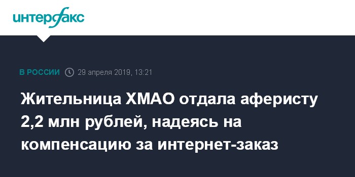 Жительница ХМАО отдала аферисту 2,2 млн рублей, надеясь на компенсацию за интернет-заказ