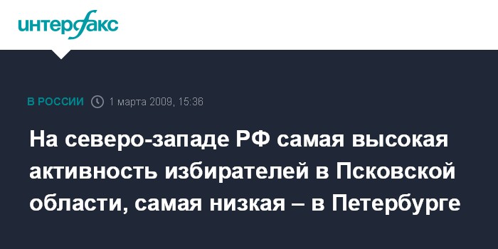 На северо-западе РФ самая высокая активность избирателей в Псковской области, самая низкая – в Петербурге