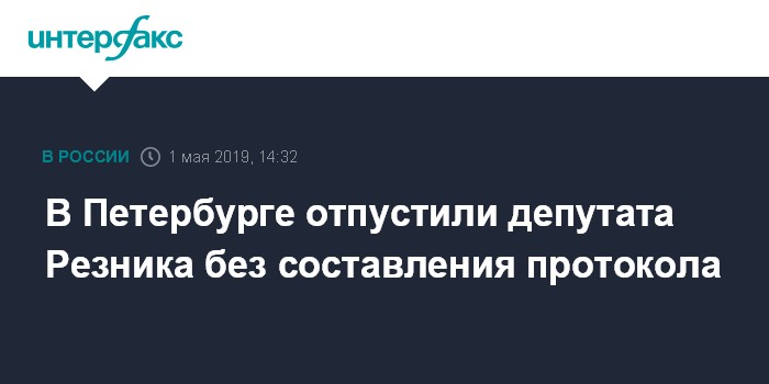 Москва. 1 мая. INTERFAX.RU - Депутат петербургского парламента Максим Резник, задержанный полицией на первомайском шествии в северной столице, отпущен после профилактической беседы, сообщили "Интерфаксу" в пресс-службе регионального ГУ МВД в среду.