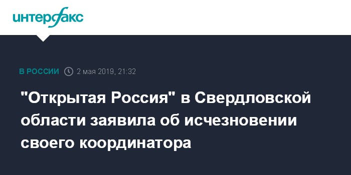 Москва. 2 мая. INTERFAX.RU - Свердловское отделение "Открытой России" заявляет об исчезновении своего координатора Владислава Постникова.