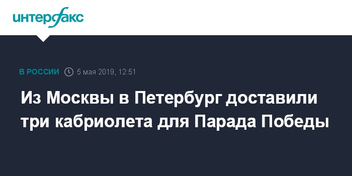 Москва. 5 мая. INTERFAX.RU - Три кабриолета ЗиЛ-41041 АМГ, ранее участвовавшие в Парадах Победы в Москве, доставлены в Санкт-Петербург, сообщили в воскресенье в пресс-службе Западного военного округа (ЗВО).