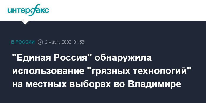 Москва. 2 марта. ИНТЕРФАКС - "Единая Россия" заявляет об использовании оппонентами "черных PR-технологий" на выборах в законодательное собрание Владимирской области.