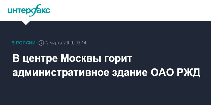 Москва. 2 марта. ИНТЕРФАКС-МОСКВА - В центре Москвы в административном здании ОАО РЖД по ул. Ново-Басманная, дом 2 в понедельник утром произошел пожар, сообщил "Интерфаксу" начальник пресс-службы ГУ МЧС по Москве Евгений Бобылев.