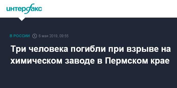 Москва. 6 мая. INTERFAX.RU - На химзаводе в Пермском крае произошел взрыв в одном из цехов, есть погибшие, сообщили "Интерфаксу" в региональном главке МЧС.