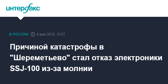 Причиной катастрофы в "Шереметьево" стал отказ электроники SSJ-100 из-за молнии