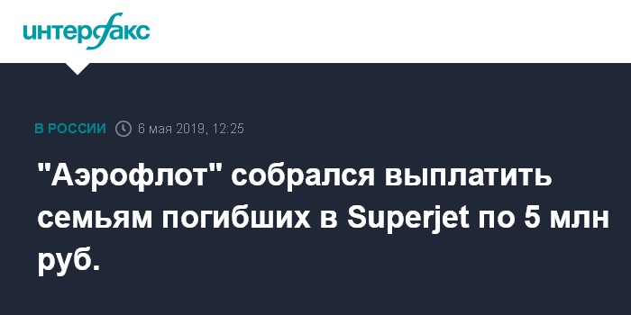 "В ближайшее время на совете директоров "Аэрофлота" будет рассмотрен проект решения об осуществлении таких выплат. Предварительное предложение по выплате семьям погибших, включая погибшего бортпроводника, - в объеме по 5 млн рублей", - сказал министр, который возглавляет совет директоров авиакомпании.