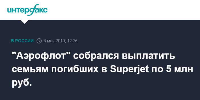 "Аэрофлот" собрался выплатить семьям погибших в Superjet по 5 млн руб.