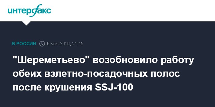 "Шереметьево" возобновило работу обеих взлетно-посадочных полос после крушения SSJ-100