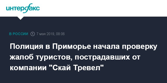 Полиция в Приморье начала проверку жалоб туристов, пострадавших от компании "Скай Тревел"