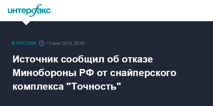 Москва. 13 мая. INTERFAX.RU - Российское оборонное ведомство отказалось от покупки снайперского комплекса "Точность", сообщил "Интерфаксу" информированный источник.