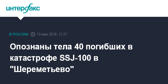 Опознаны тела 40 погибших в катастрофе SSJ-100 в "Шереметьево"