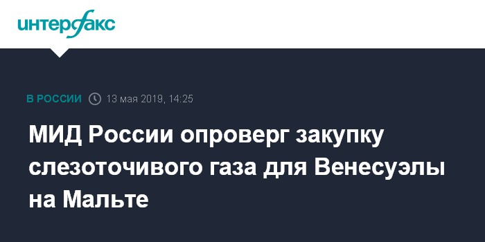 Москва. 13 мая. INTERFAX.RU - В МИД РФ опровергли сообщения некоторых СМИ о том, что Россия закупала слезоточивый газ на Мальте для последующей отправки в Венесуэлу.