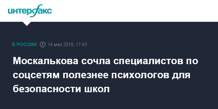 Москва. 14 мая. INTERFAX.RU - Российский уполномоченный по правам человека Татьяна Москалькова выступила с инициативой ввести в штат школьных работников должность специалиста по работе с соцсетями.