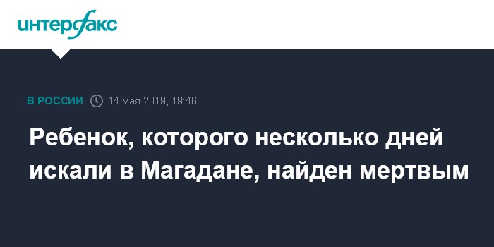 Москва. 14 мая. INTERFAX.RU - Пропавшая в Магадане четырехлетняя девочка найдена мертвой, сообщает Национальный центр помощи пропавшим и пострадавшим детям.