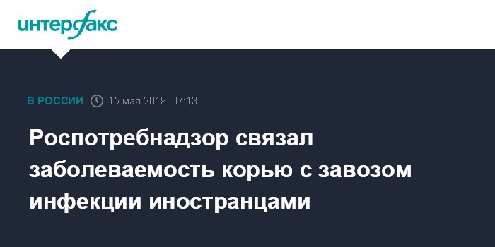 Москва. 15 мая. INTERFAX.RU - В России корью заболевают из-за ухудшения эпидемиологической обстановки за рубежом, сообщается на сайте Роспотребнадзора в среду.