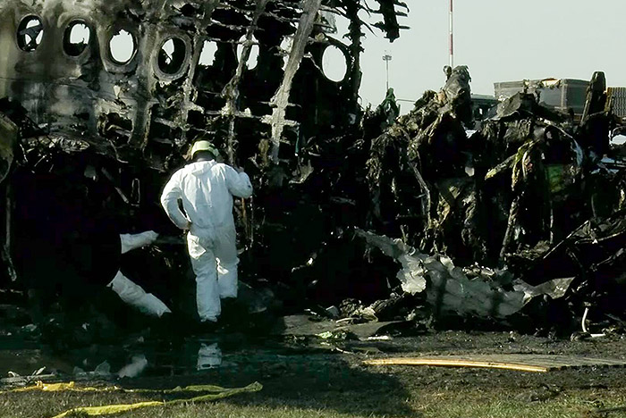 По данным собеседников "Ъ", при втором ударе самолета о полосу машина и пассажиры перенесли динамическую перегрузку около 5G, в то время как нагрузка 3,75G является предельной для воздушного судна этого типа. В результате задние стойки шасси пробили топливные баки машины, что спровоцировало пожар.