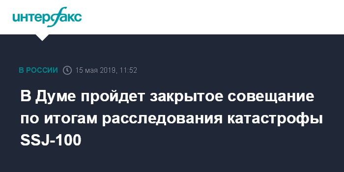 Москва. 15 мая. INTERFAX.RU - Комитет Госдумы по транспорту проведет закрытое совещание по итогам расследования катастрофы самолета Superjet-100 в московском аэропорту "Шереметьево", сообщил председатель комитета Госдумы по транспорту Евгений Москвичев на заседании комитета в среду.