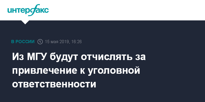 Москва. 15 мая. INTERFAX.RU - Министерство науки и высшего образования России разработало поправки в устав МГУ им. М.В.Ломоносова, согласно которым студент или аспирант может быть отчислен из университета, если суд признает его виновным в уголовном преступлении.