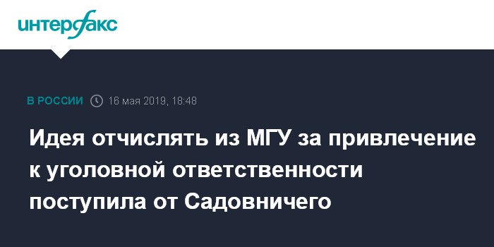 Идея отчислять из МГУ за привлечение к уголовной ответственности поступила от Садовничего