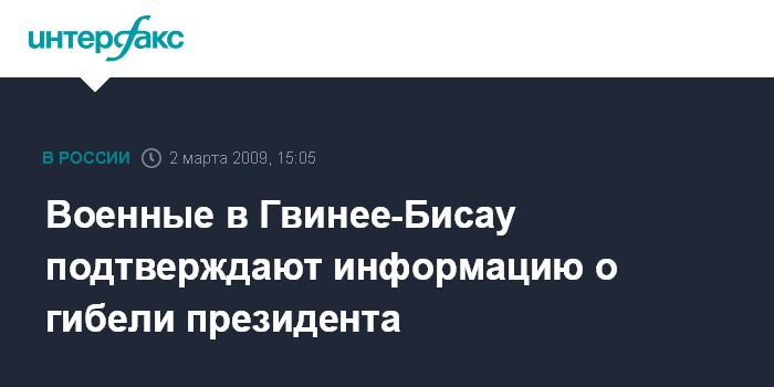 Дакар. 2 марта. INTERFAX.RU - Генштаб вооруженных сил Гвинеи-Бисау подтвердил в понедельник информацию о гибели президента страны, Жоау Бернарду Виейры, и пообещал, что военные будут соблюдать конституционный строй.