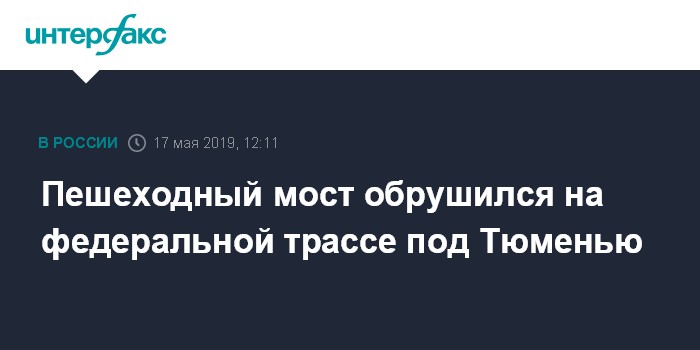 Москва. 17 мая. INTERFAX.RU - На 12 км федеральной автодороги Тюмень - Ханты-Мансийск (Тюменская область) в пятницу обрушился надземный пешеходный переход, сообщает пресс-служба регионального управления МЧС.