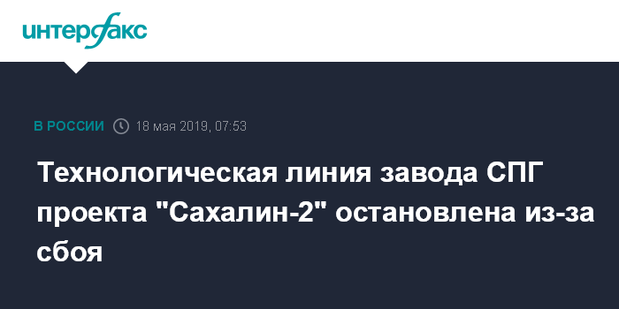 Москва. 18 мая. INTERFAX.RU - Из-за произошедшего сбоя в работе оборудования вечером в пятницу остановлена одна из двух технологических линий завода по производству сжиженного природного газа (СПГ) производственного комплекса "Пригородное" проекта "Сахалин-2" в Корсаковском районе на Сахалине, сообщили в субботу агентству "Интерфакс" в пресс-службе Sakhalin Energy.