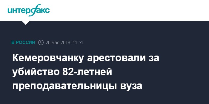 14 мая пожилая женщина, преподававшая в кемеровской медицинской академии, не пришла вовремя на работу. Ее коллеги пошли к ней домой и нашли тело женщины с проломленной головой. Оказалось, что из квартиры украдены ювелирные украшения, банковские карты и телефон.