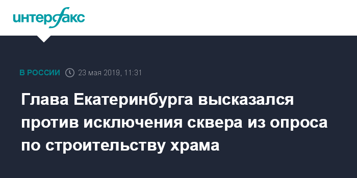 Глава Екатеринбурга высказался против исключения сквера из опроса по строительству храма