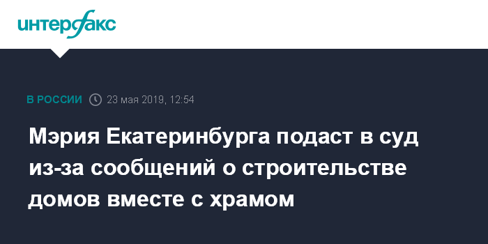 Мэрия Екатеринбурга подаст в суд из-за сообщений о строительстве домов вместе с храмом