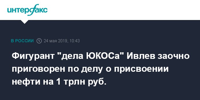 Фигурант "дела ЮКОСа" Ивлев заочно приговорен по делу о присвоении нефти на 1 трлн руб.