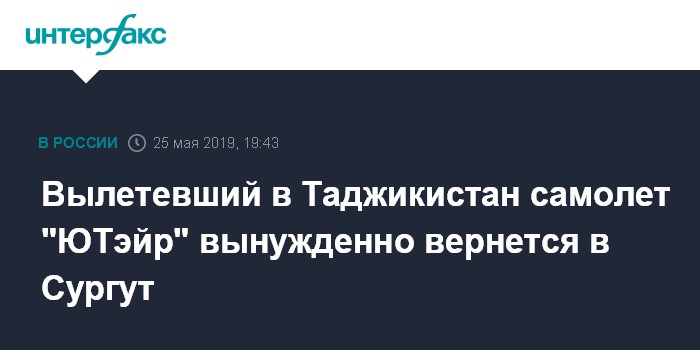 Вылетевший в Таджикистан самолет "ЮТэйр" вынужденно вернется в Сургут
