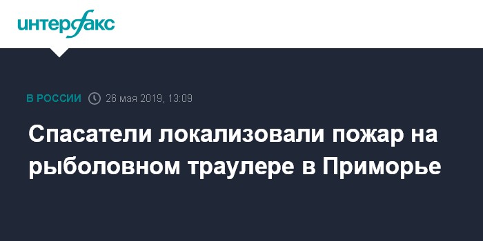 Как сообщалось, в воскресенье в поселке Преображение Лазовского района края у причальной стенки произошел пожар на рыболовном траулере. Огонь вспыхнул в трюме судна. Пострадавших нет. Угрозы загрязнения окружающей среды нет.
