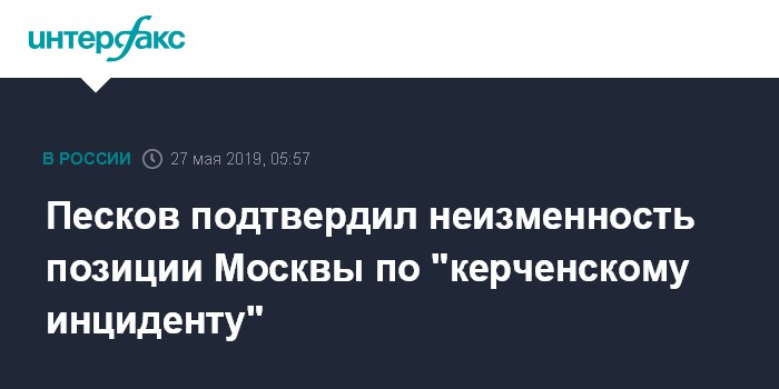 Песков подтвердил неизменность позиции Москвы по "керченскому инциденту"